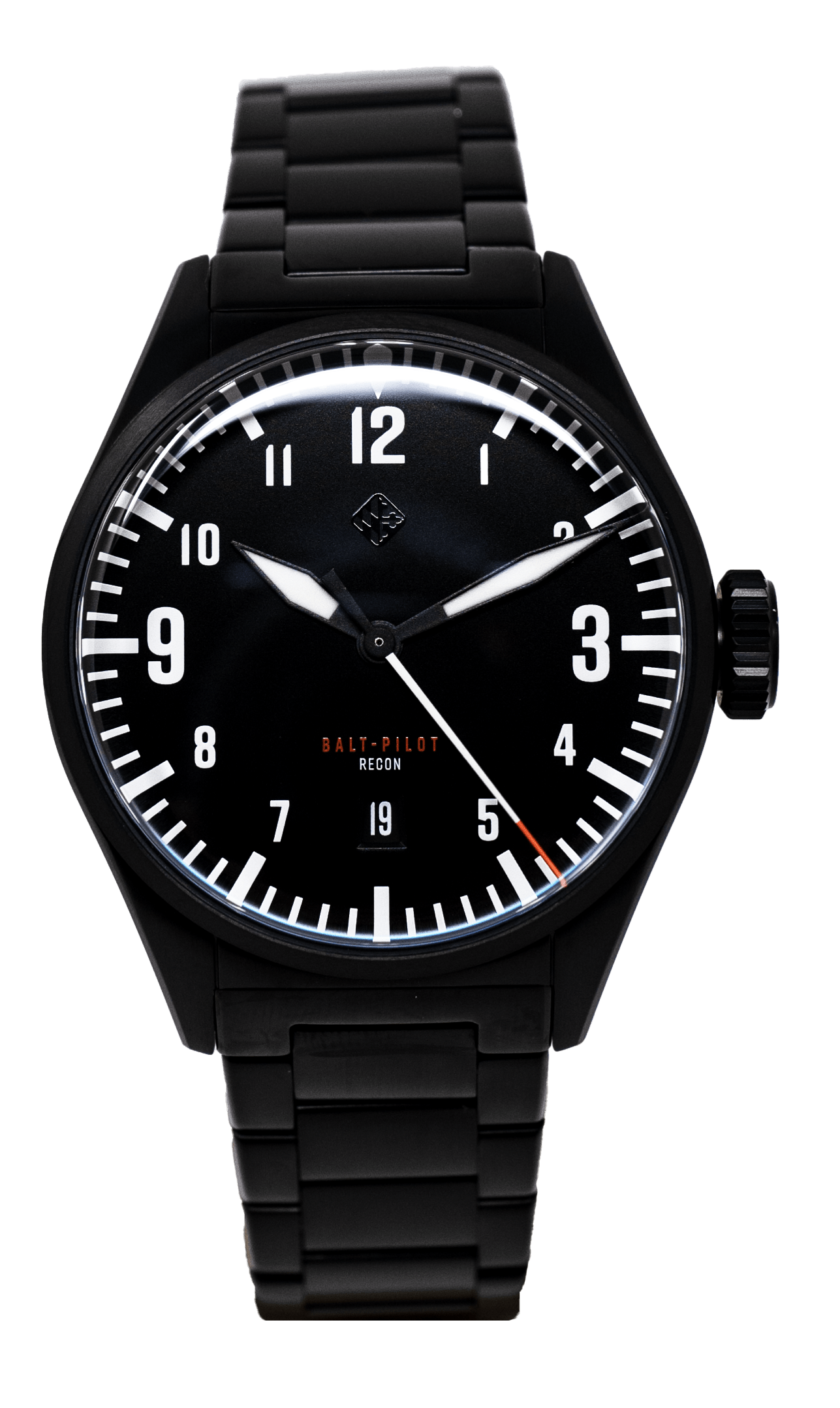 The Balt-Pilot is a lightweight titanium Pilot watch named after the Martin 187 Baltimore (A-30). The Martin 187 was used in WWII by US allies and was eventually nicknamed "The Balt".  The Martin 187 Baltimore was a twin-engined light attack bomber built by the Glenn L. Martin Company based in Maryland.