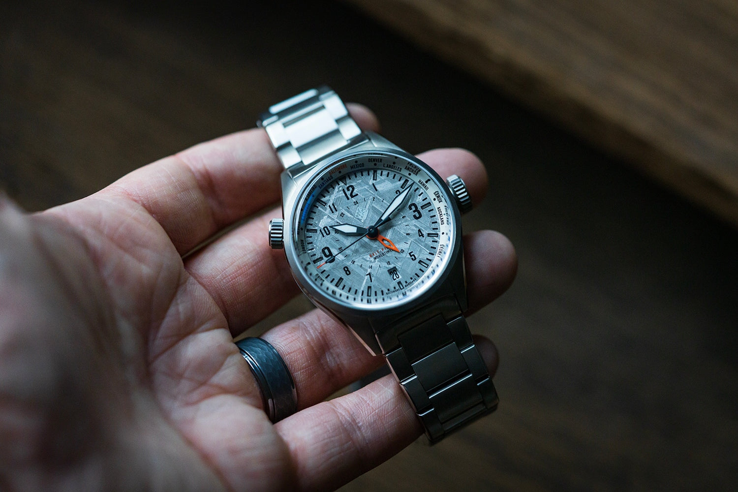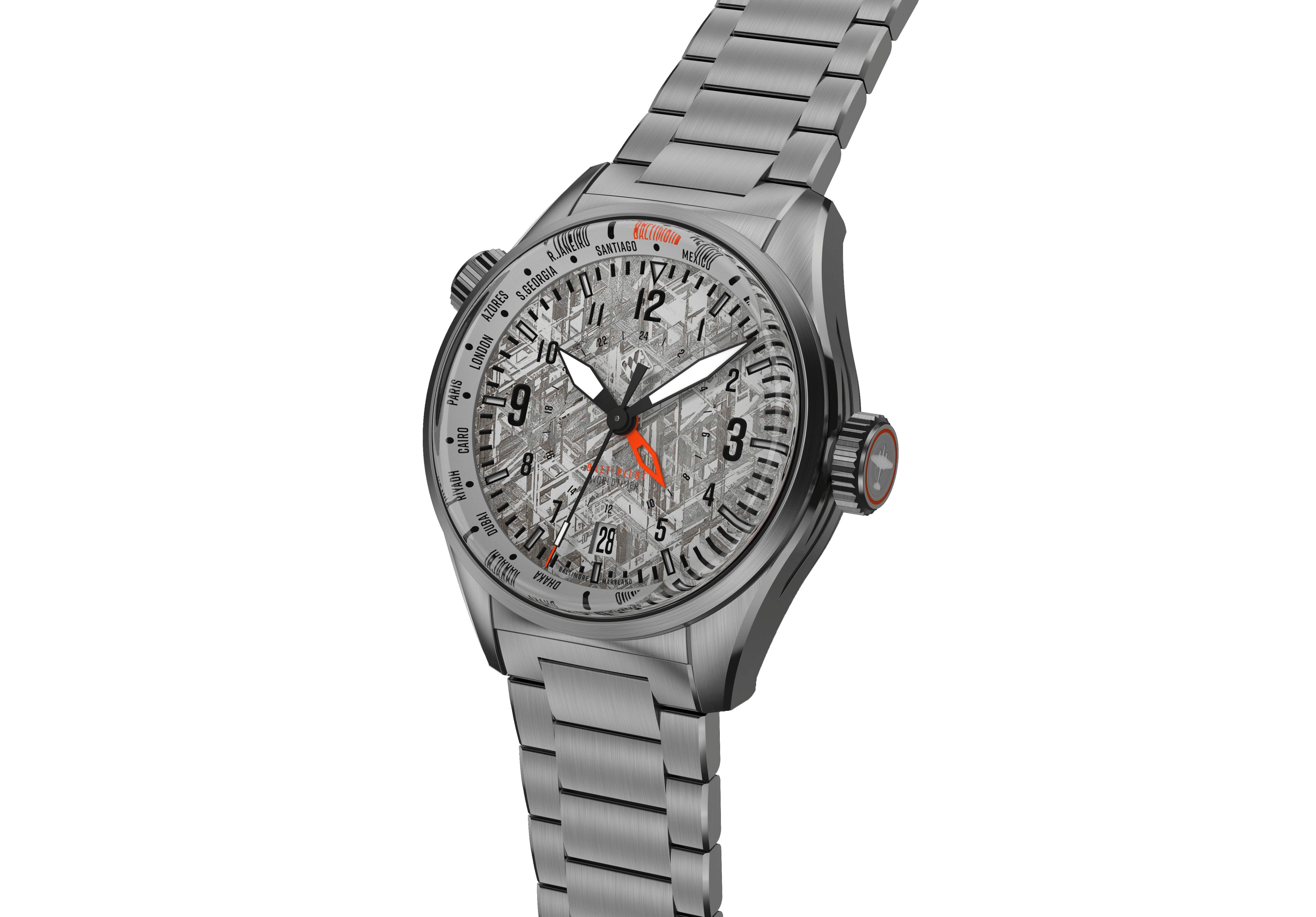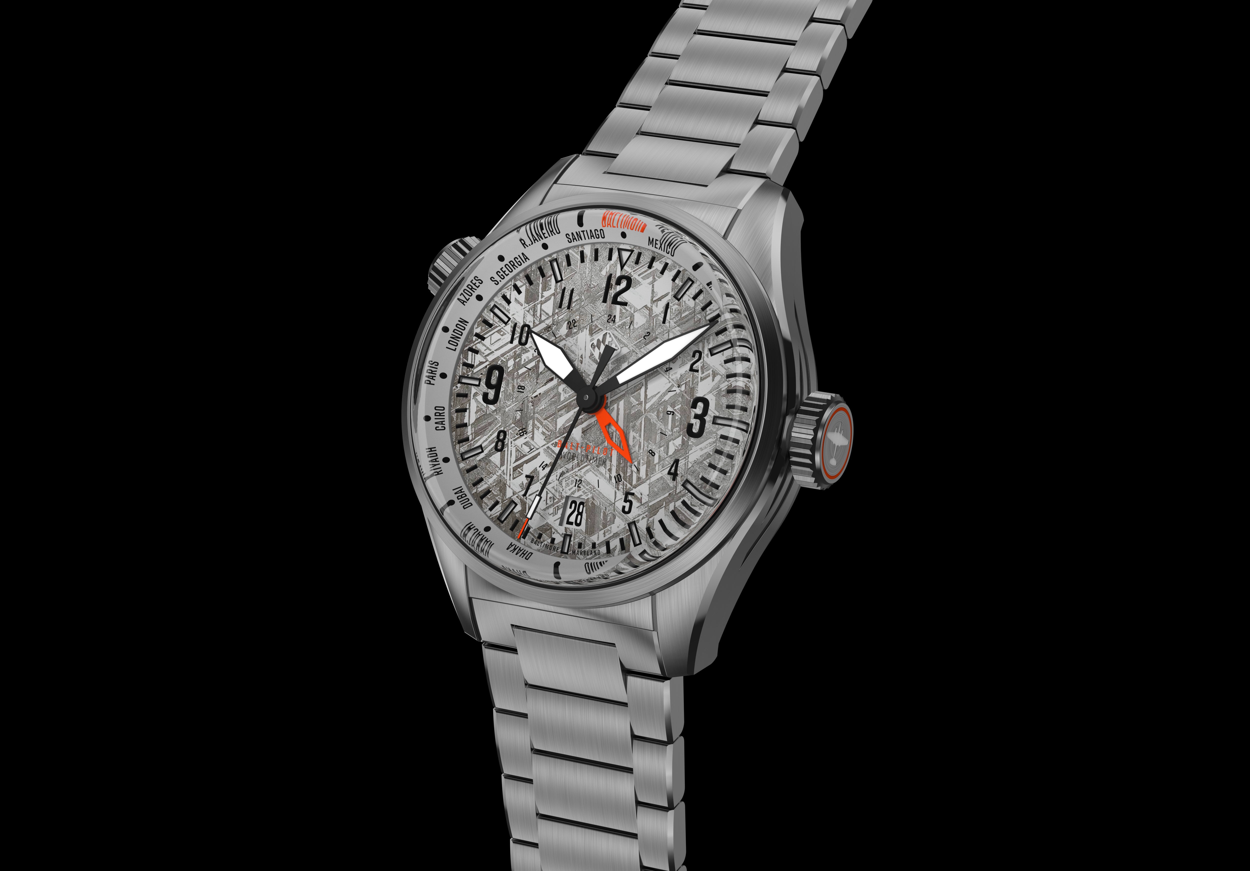 The Meteorite dial is sourced from Sweden, from the Muonionalusta Meteorite rock, that’s a million years old and was found just 100 years ago on earth.