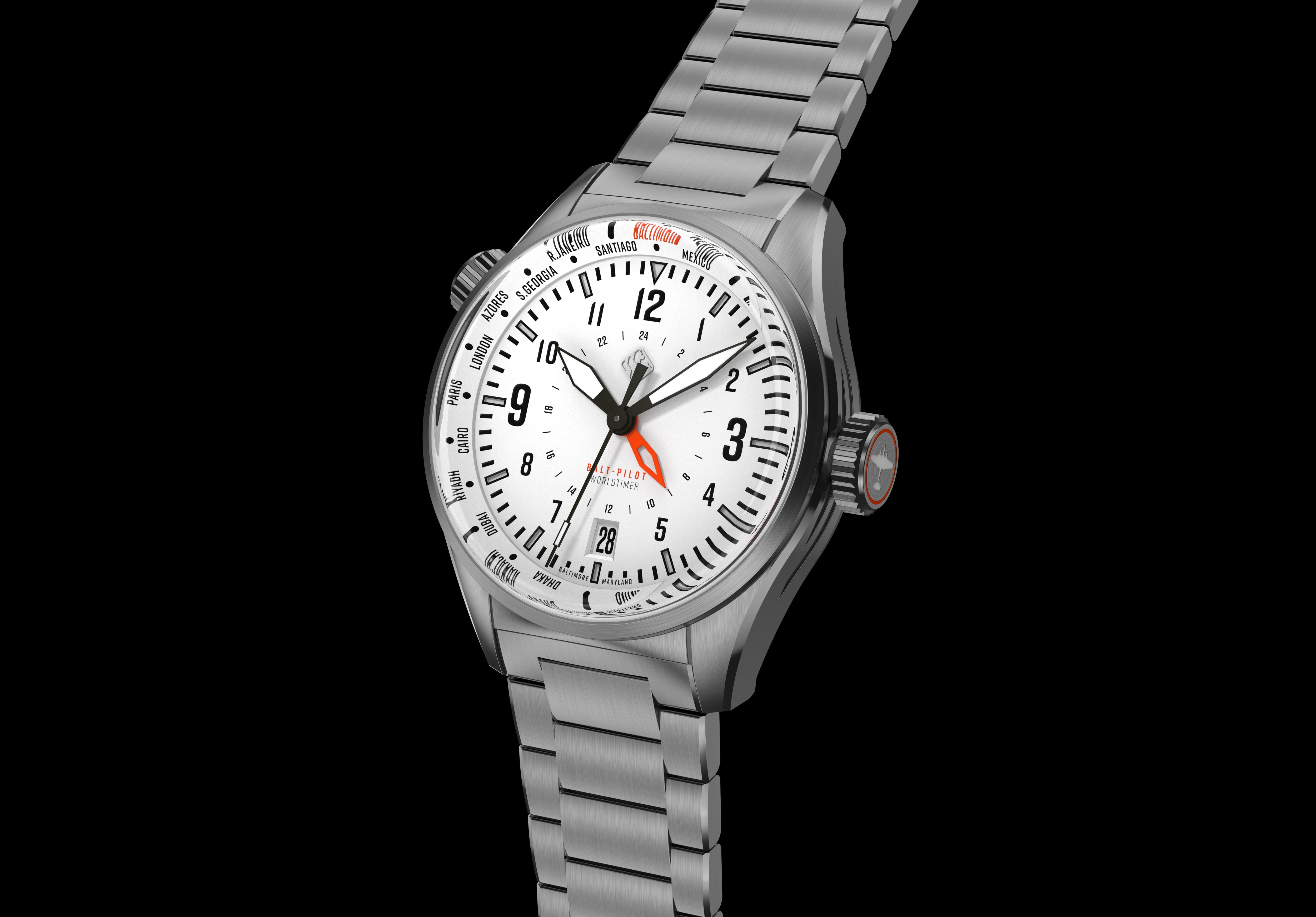 Balt-Pilot Worldtimer Polar White Watches Tsao Baltimore