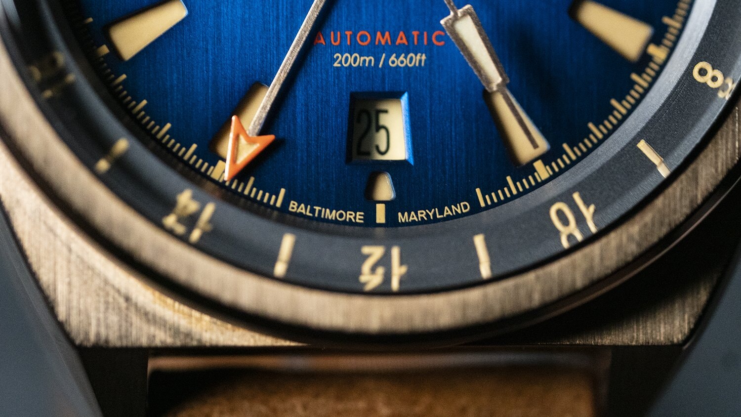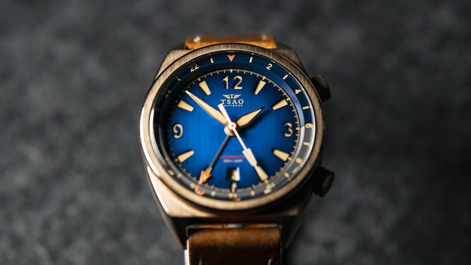 The Legacy is offered in four dramatic colorways inspired by the history and feel of Baltimore itself. Each dial option combines a tall bidirectional internal rotating bezel with deep cutouts for the mix of lumed Arabic numerals and indices, along with classic pilot watch style hands and a heavily textured degradè dial finish. From here, each of the four colors imbues the dial design with its own sense of character.