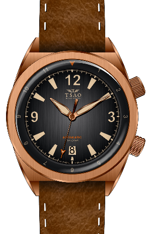 The 40mm Legacy takes on an angular, modernist take on the super compressor dive watch formula. The case combines distinctive dual crowns at 2 o’clock and 4 o’clock with a razor sharp tonneau case design. The industrial brushed finishing emphasizes the sharp lines of the design, while the raised external bezel gives the case a bold visual presence on the wrist. In keeping with the super compressor dive watch look, the Tsao Baltimore Legacy offers a dive-ready 200 meters of water resistance.