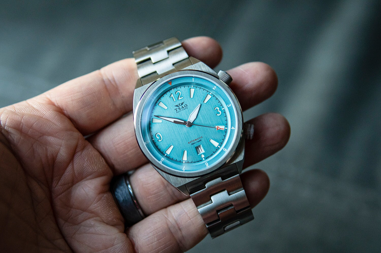 Introducing the newest color option in the Legacy Collection. The Arctic is a subtle yet elegant ice blue color with a color matching internal rotating bezel.