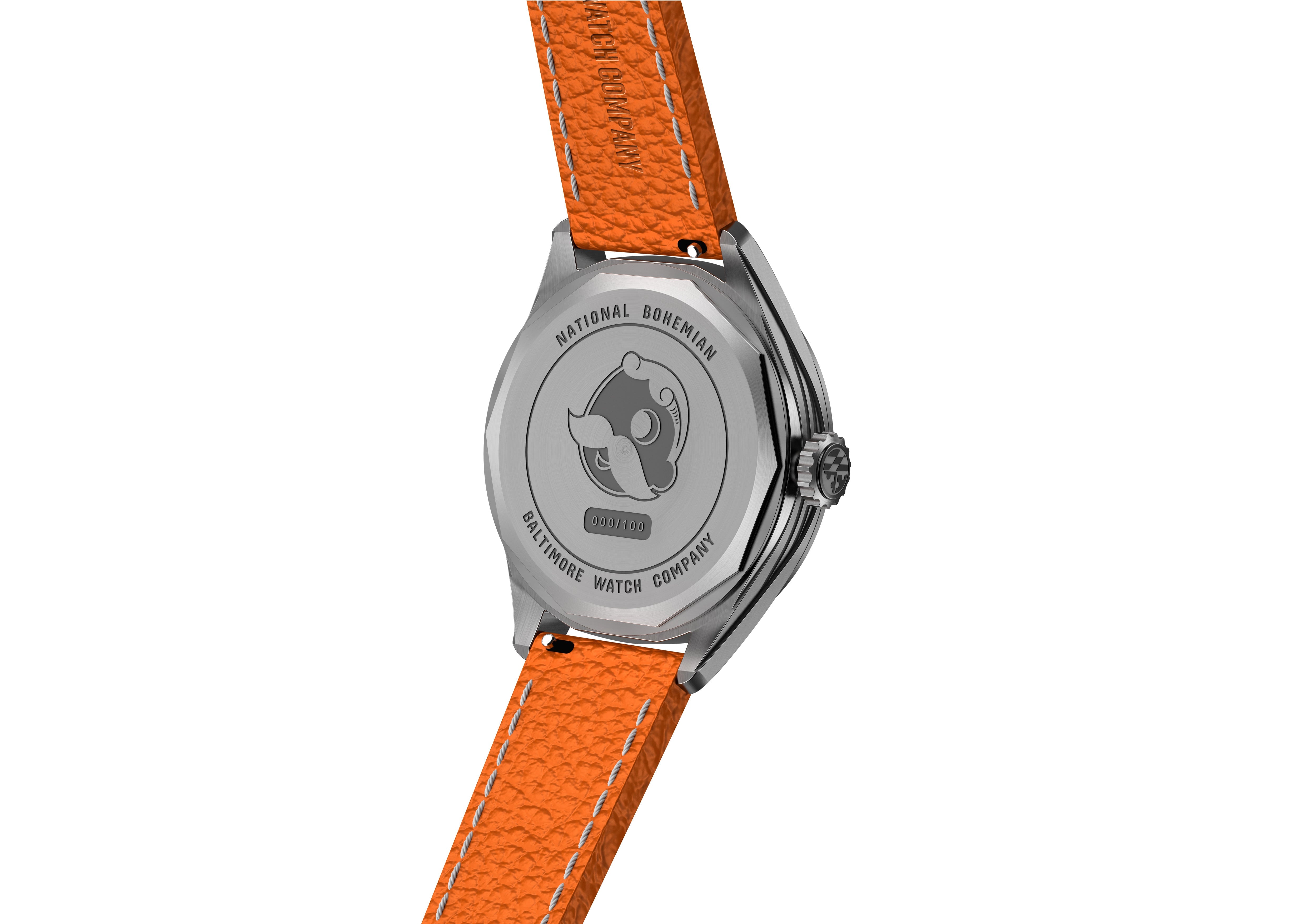 In 2023 we signed an official license agreement with National Bohemian (aka Natty Boh) and are able to produce this limited edition timepiece. Although Natty Boh isn't in Baltimore anymore, started in 1885, it's still a very iconic brand that has played a huge part in Baltimore's history. Being a Baltimore based watch company, it was a no brainer to work with Natty Boh and create something special.
