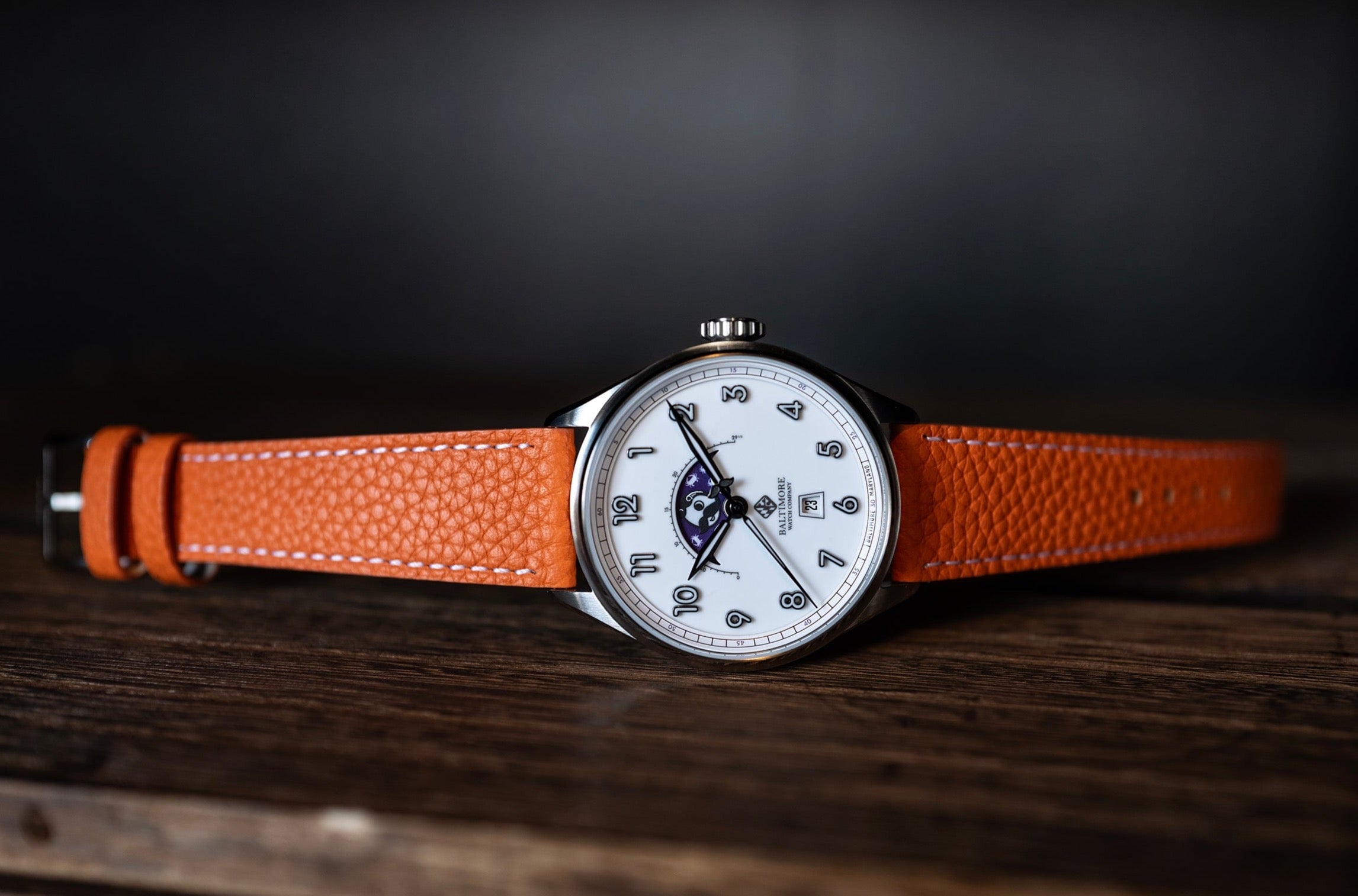 In 2023 we signed an official license agreement with National Bohemian (aka Natty Boh) and are able to produce this limited edition timepiece. Although Natty Boh isn't in Baltimore anymore, started in 1885, it's still a very iconic brand that has played a huge part in Baltimore's history. Being a Baltimore based watch company, it was a no brainer to work with Natty Boh and create something special.