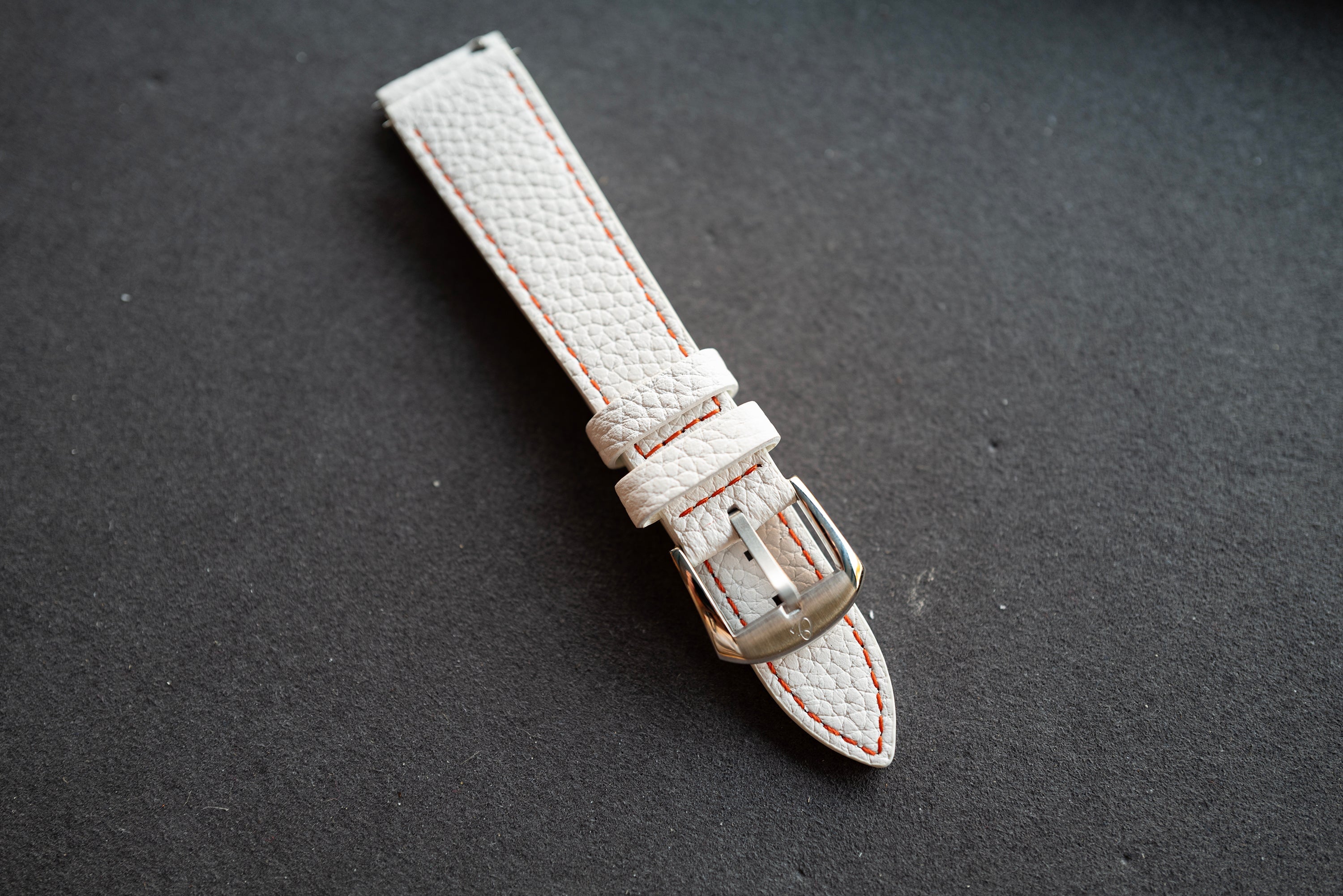 A perfect strap option for the First Edition Orioles Timepiece.  This strap is made with an incredibly comfortable and soft white leather, matched with orange stitching to complement our O's!