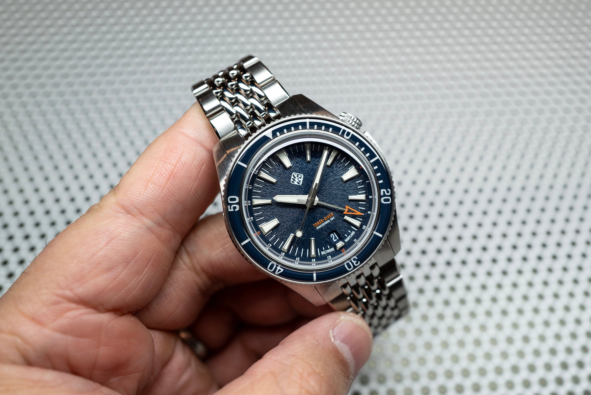 Almost identical to the original Torsk-Diver Pro (43mm) but in a smaller size, a GMT movement, and an updated micro adjustment clasp.