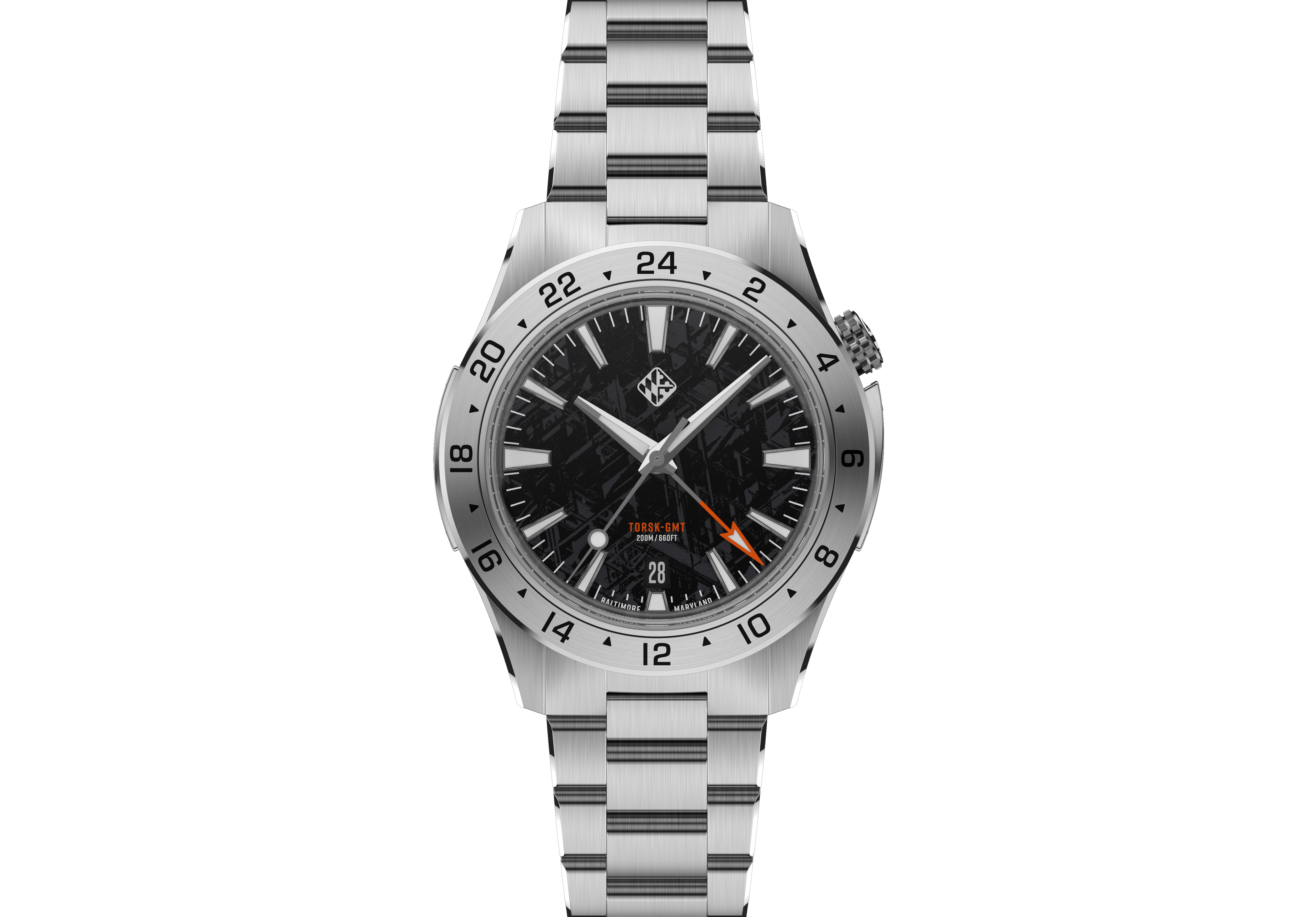 Each dial is crafted from a million year old meteorite, making every piece truly one of a kind — a fragment of the cosmos with a story as deep as the sea. The micro-adjustable bracelet clasp and see-through caseback complete a design that honors exploration, craftsmanship, and Baltimore’s maritime heritage.
