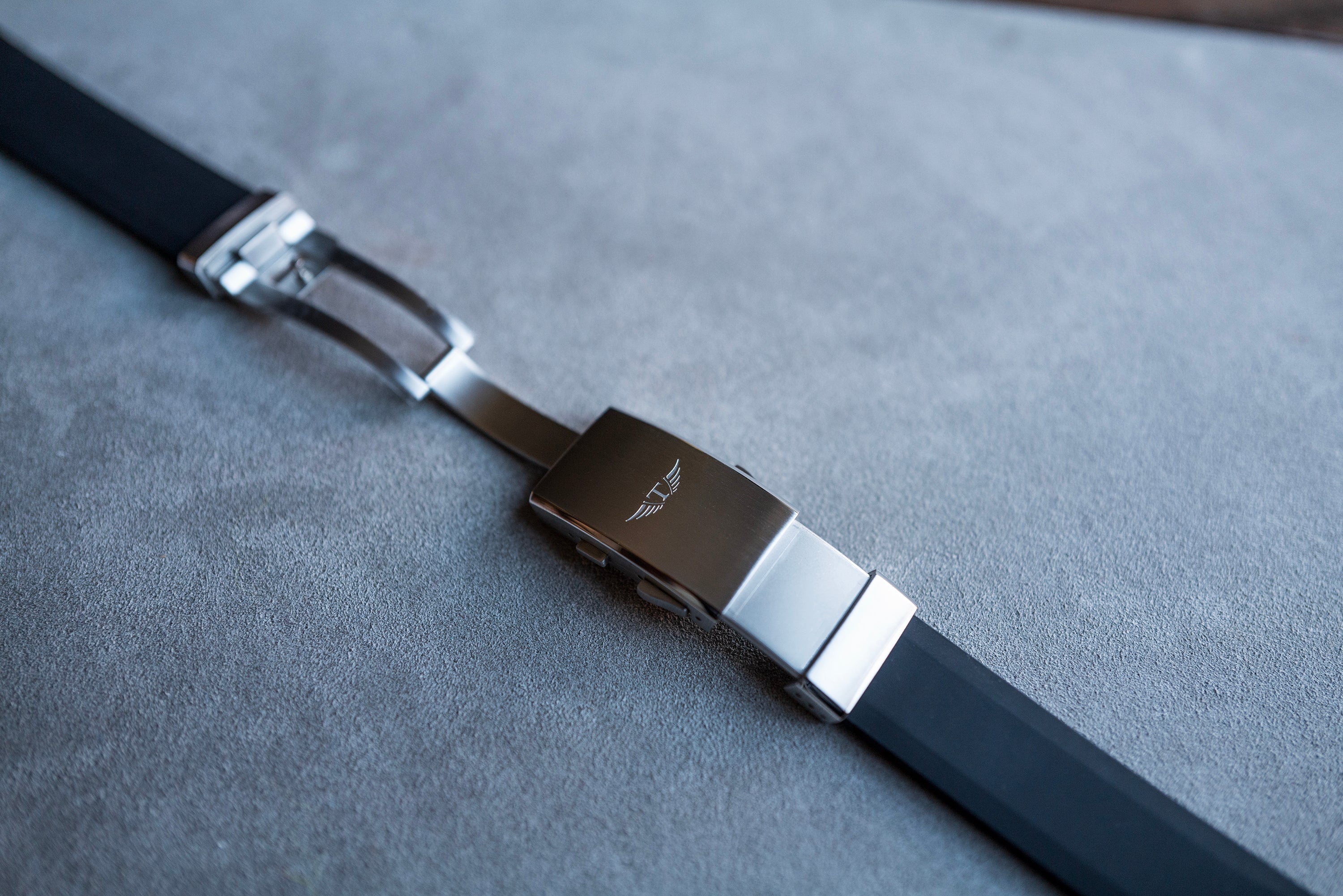 Refresh availabilityThis Black FKM Rubber strap is a custom strap designed and made for the new Torsk-Diver Pro Collection. Each rubber strap is cut-to fit and comes with a steel dive extension buckle.